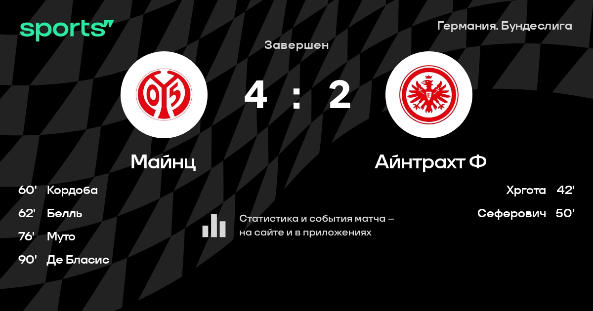 Хут - Бросински, Балогун, Белль, Донати - Фрай, Гбамен, Де Бласис, Кркич, Озтуналы - КордобаЗапасные: Лессль, Рамальо, Латца, Самперио, Муто, Квайсон