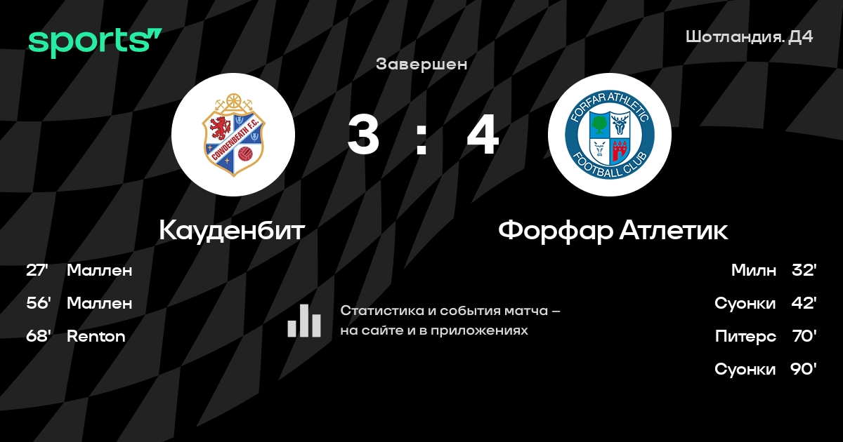 Адам - О’Брайен, Kennedy, Malcolm, Bain - Суонки, Denholm, Милн, Fotheringham - Питерс, CoxЗапасные: Макговерн, Travis, Munro, Маккол, Scott, Aitken, Todd Smith