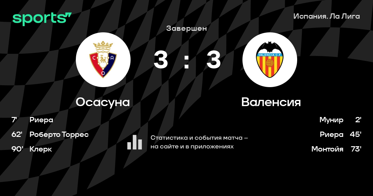 Чемпионат Испании. «Осасуна» сыграла вничью с «Валенсией»