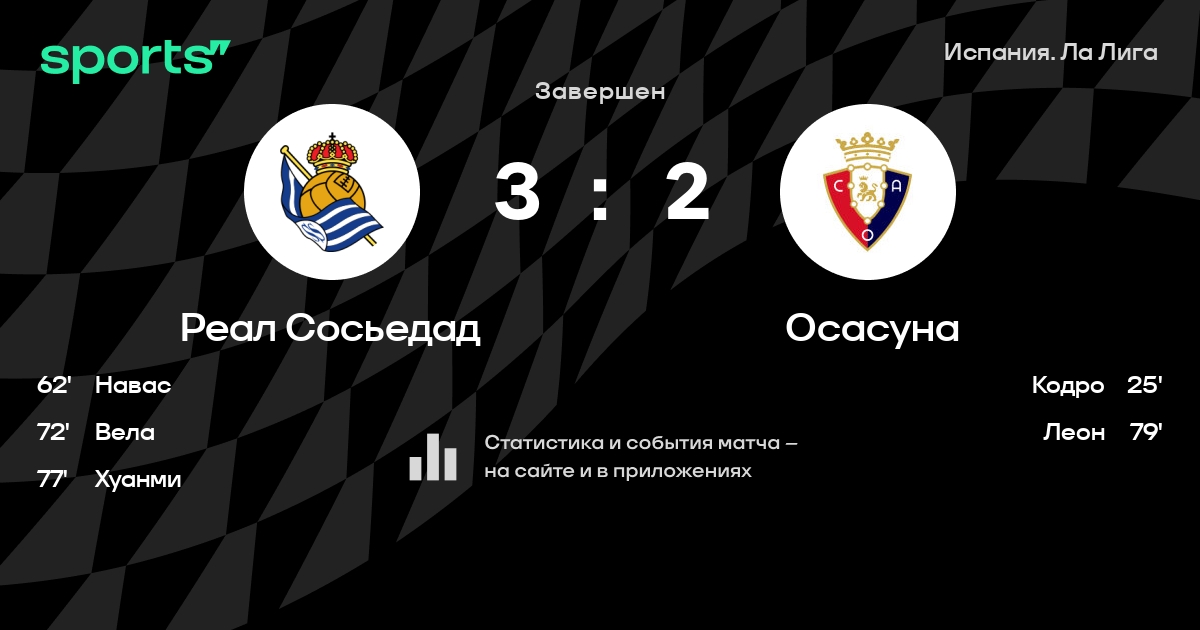 Рульи - Берчиче, Навас, Элустондо, Одриосола - Гранеро, Ильярраменди, Прието - Ойарсабаль, Виллиан Жозе, ВелаЗапасные: Рамирес, Сальдуа, Гонсалес, Каналес, Сурутуса, Хуанми, Баутиста