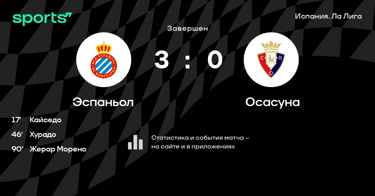 Диего Лопес - Аарон Мартин, Рейес, Дуарте, Наварро - Пьятти, Хурадо, Давид Лопес, Перес - Кайседо, Жерар МореноЗапасные: Роберто, Хави Лопес, Мелендо, Хави Фуэго, Рейес, Рока, Васкес