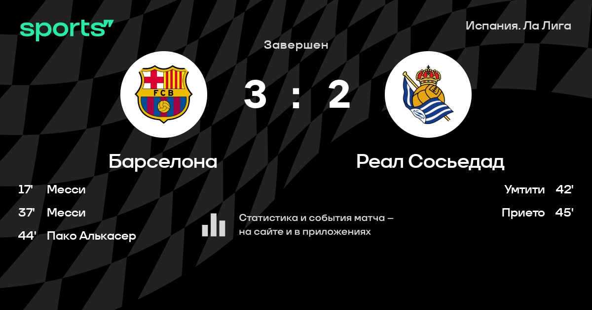 тер Стеген - Альба, Умтити, Пике, Серджи Роберто - Ракитич, Бускетс, Месси, Андре Гомеш - Пако Алькасер, СуаресЗапасные: Силлессен, Динь, Матье, Аленья, Иньеста, Денис Суарес, Кардона