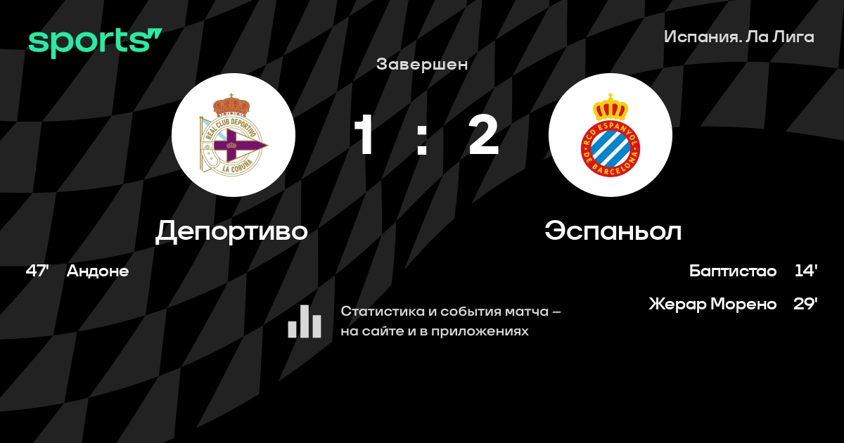 Диего Лопес - Альварес, Рейес, Давид Лопес, Наварро - Пьятти, Хави Фуэго, Санчес, Хурадо - Жерар Морено, БаптистаоЗапасные: Роберто, Дуарте, Диоп, Рока, Кайседо, Перес, Васкес