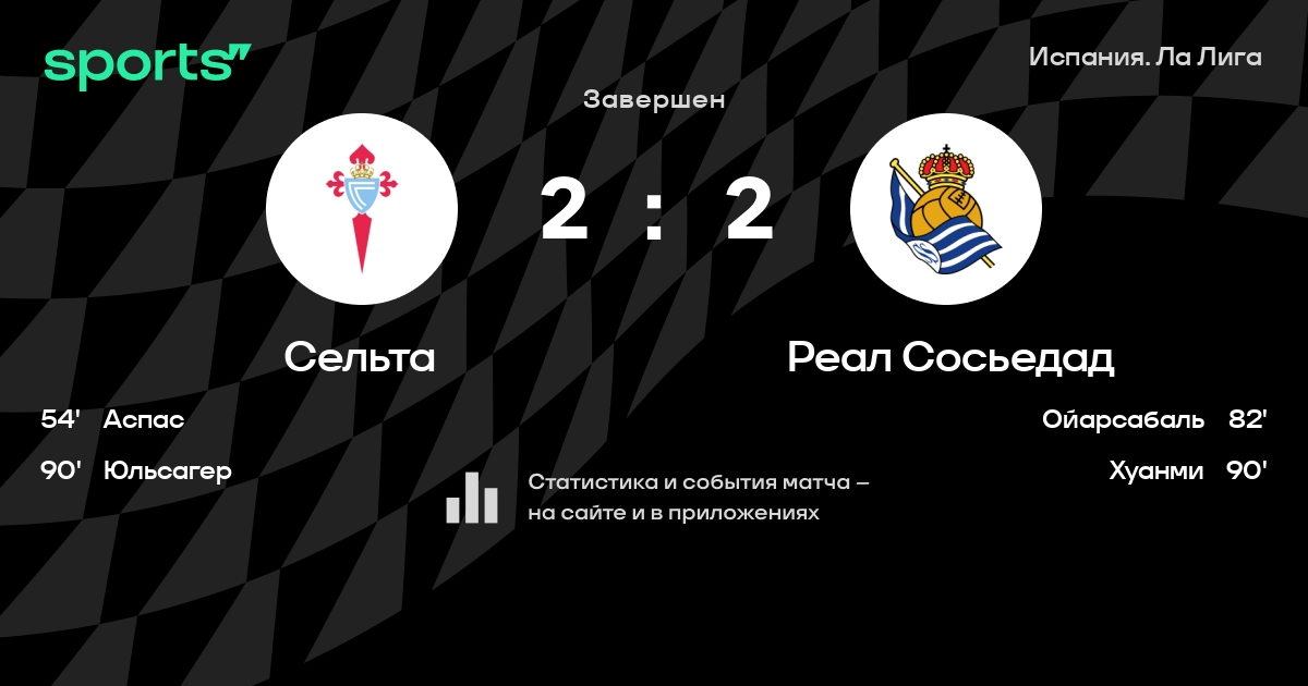 Рульи - Берчиче, Мартинес, Элустондо, Одриосола - Сурутуса, Ильярраменди, Прието - Ойарсабаль, Виллиан Жозе, ВелаЗапасные: Рамирес, Сальдуа, Субельдия, Гранеро, Каналес, Хуанми, Баутиста