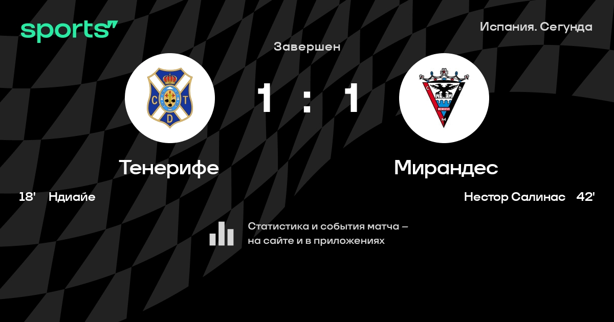 | 4 | Тенерифе | 42 | 16 | 18 | 8 | 50 | 37 | +13 | 66 | ||