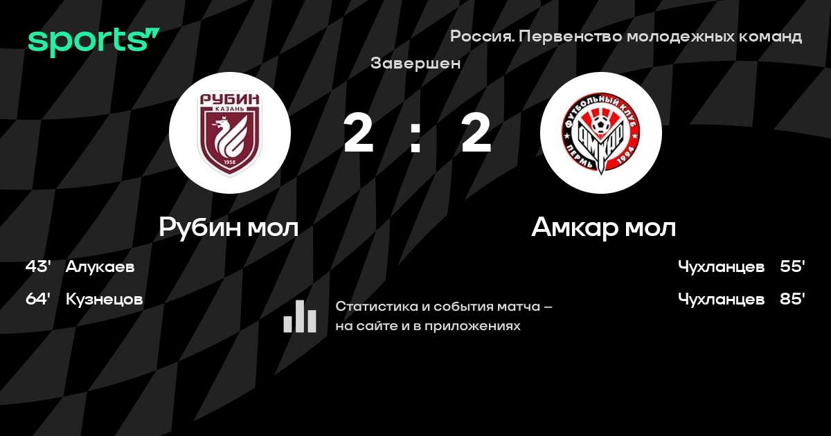 Первенство молодежных команд. «Рубин» сыграл вничью с «Амкаром» и другие результаты