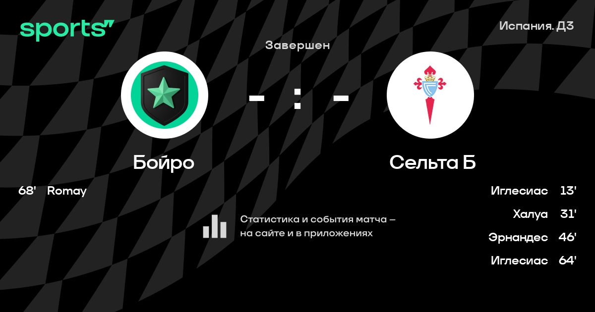 Нестор Диас - Риера, Кевин Васкес, Араухо, Аленде - Мера, Борха Фернандес, Луиш Гуштаву - Эрнандес, Иглесиас, ХалуаЗапасные: Фрага, Кастельяно, De Paz Mouriño, Хуан Антонио, Медина, Камашу, Rodríguez Vaz