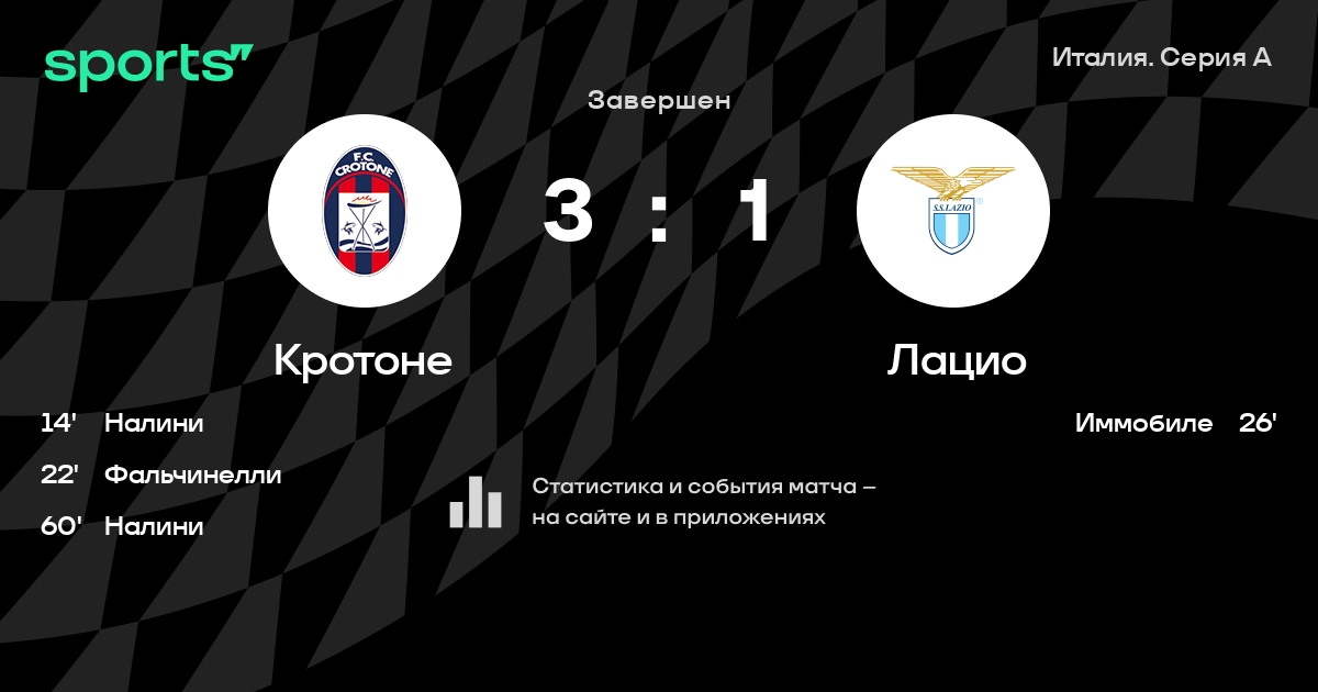 Стракоша - Раду, Уоллес, Баштуш - Габаррон, Биглия, Милинкович-Савич, Мурджа, Баста - Иммобиле, Фелипе АндерсонЗапасные: Варгич, Адамонис, де Врей, Спиццикино, Кардозелли, Крекко, Мохамед, Росси, Ломбарди, Тункара