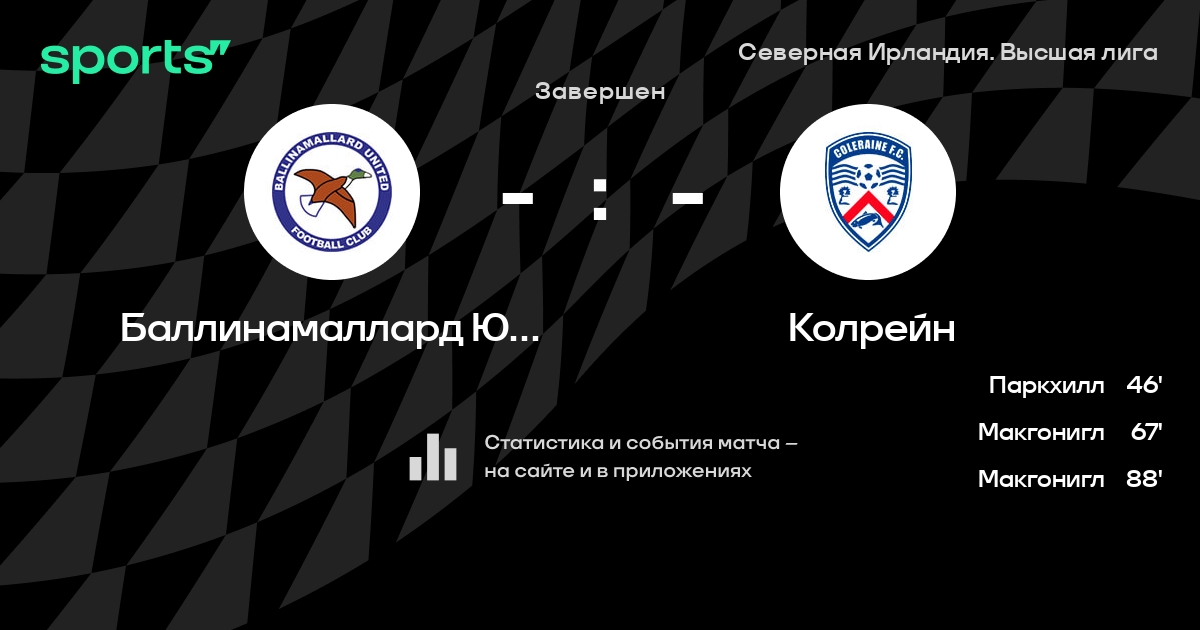 Баллинамаллард Юнайтед - Колрейн: положение в турнире