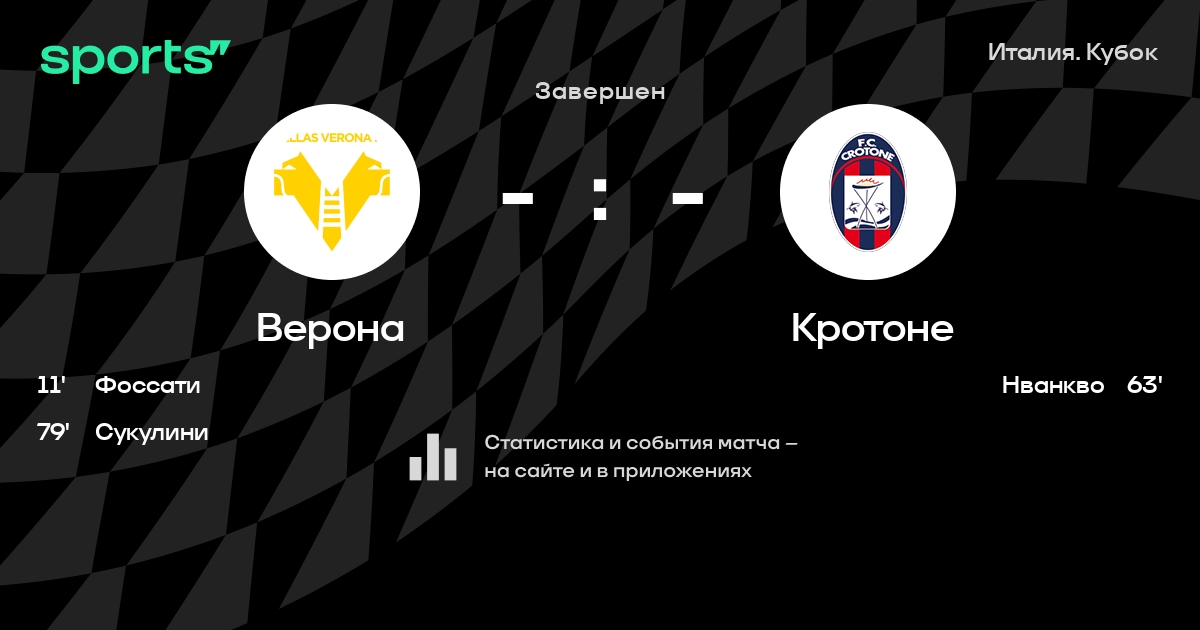 Кордац - Чеккерини, дос Сантос - Сальцано, Барберис, Фацци, Ди Роберто, Капецци - Тонев, Стоян, ПалладиноЗапасные: Феста, Феррари, Дзампано, Мартелла, Ньяоре, Роден, Маццарани, Налини, Нванкво