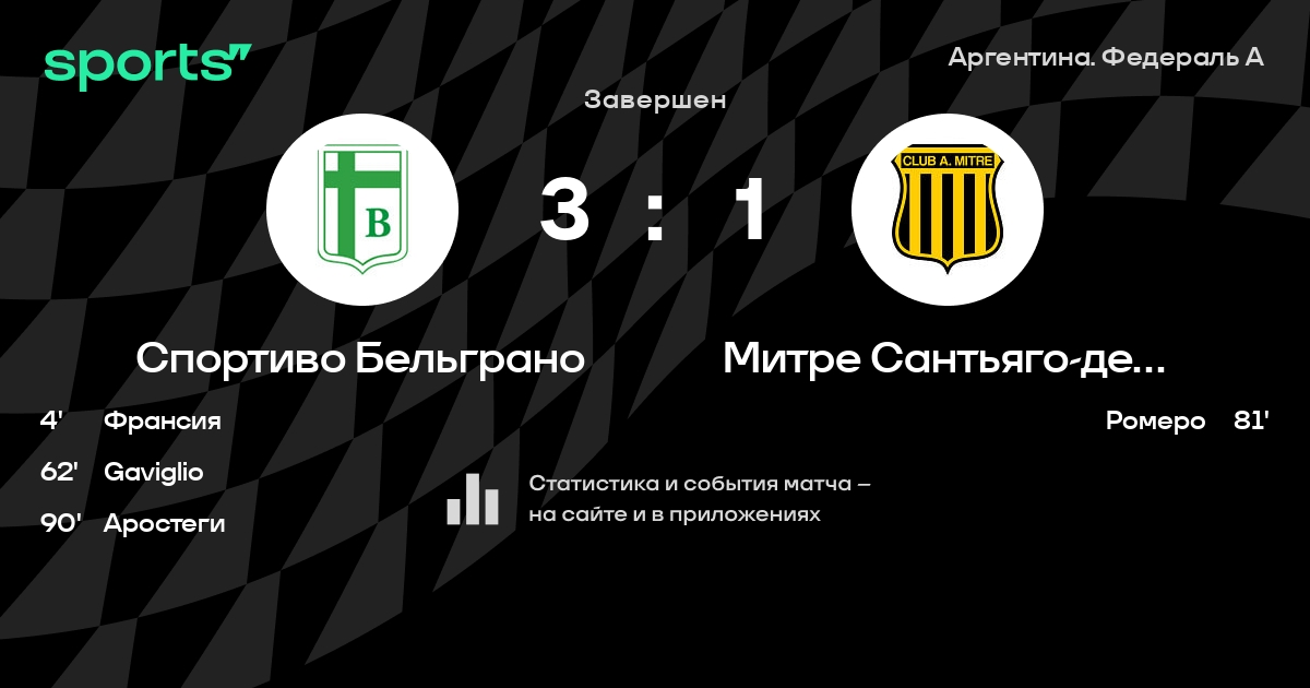 Спортиво Бельграно - Митре Сантьяго-дель-Эстеро: статистика матча