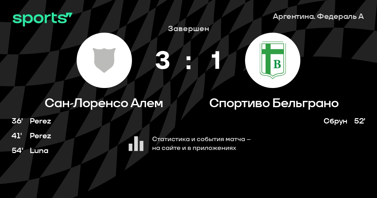Трансляция Сан-Лоренсо Алем - Спортиво Бельграно