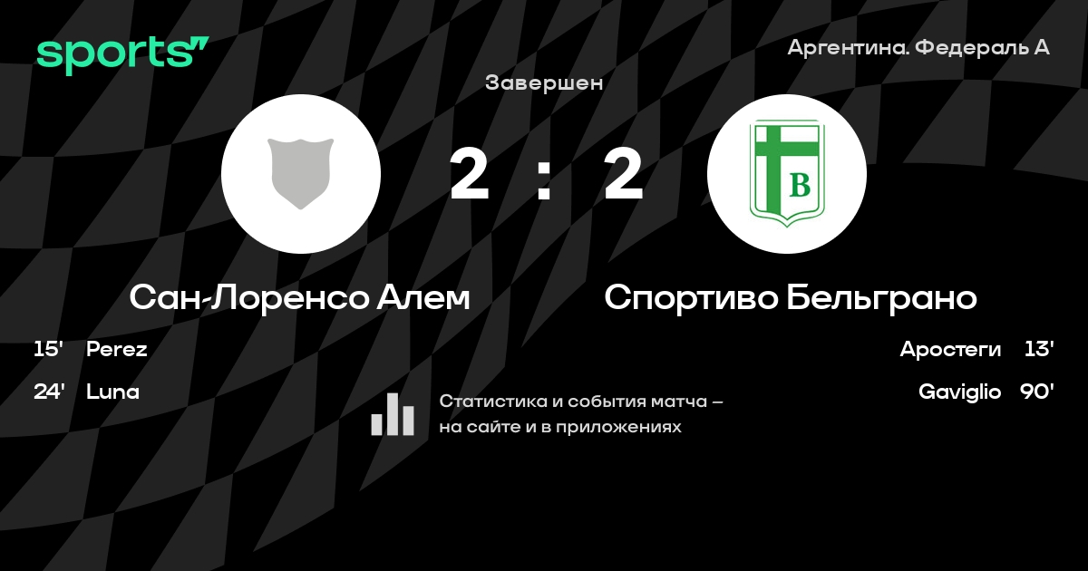 Трансляция Сан-Лоренсо Алем - Спортиво Бельграно