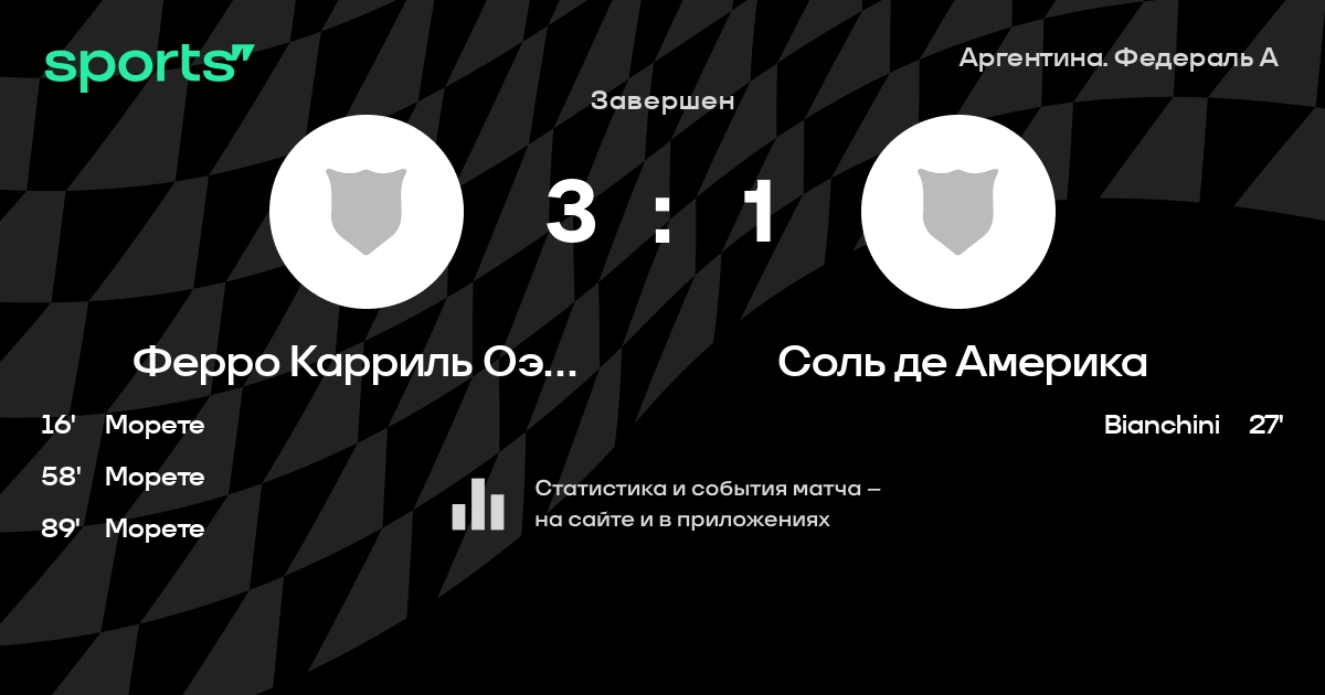 Ферро Карриль Оэсте ЛП – Соль де Америка: коэффициенты