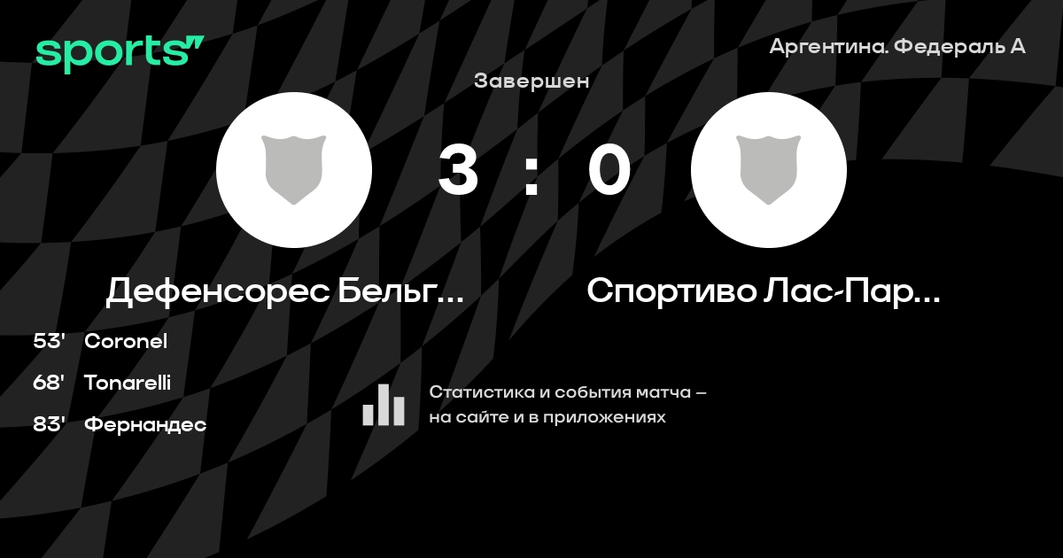 Трансляция Дефенсорес Бельграно ВР - Спортиво Лас-Парехас