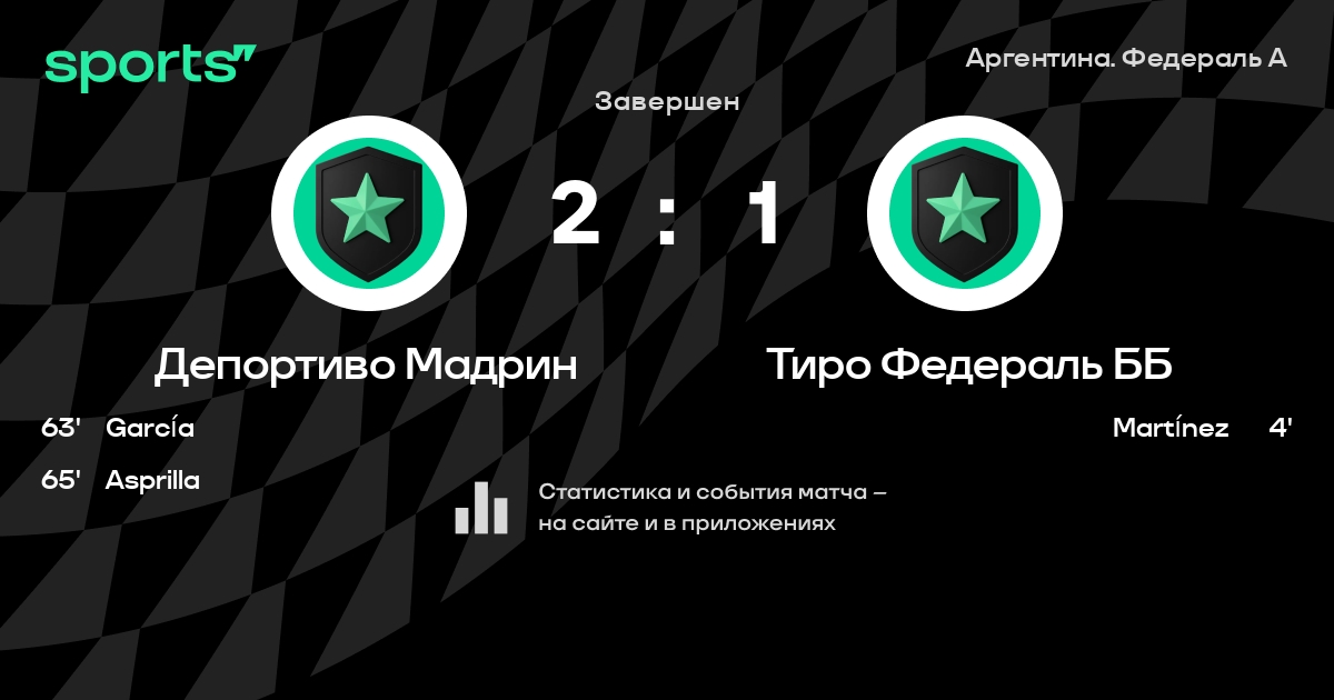 Трансляция Депортиво Мадрин - Тиро Федераль ББ