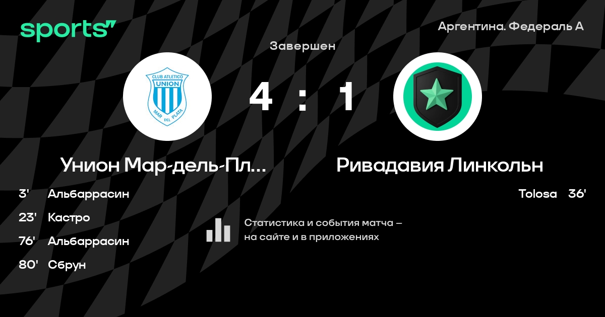 Трансляция Унион Мар-дель-Плата - Ривадавия Линкольн