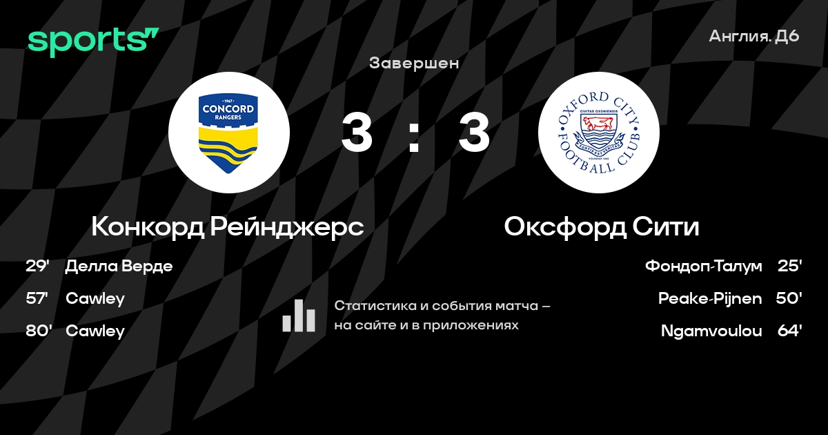 Конкорд Рейнджерс - Оксфорд Сити: положение в турнире