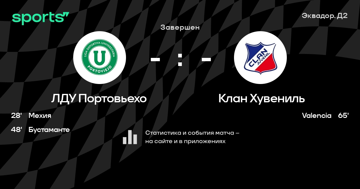 | 7 | ЛДУ Портовьехо | 44 | 15 | 12 | 17 | 42 | 51 | -9 | 57 | ||