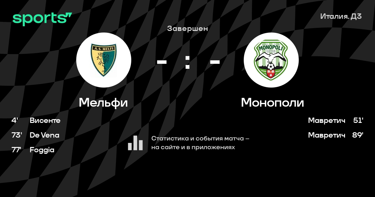 Gragnaniello - De Giosa, Laezza, Либутти, Bruno - Читтадино, Obeng, Эспозито, Висенте - De Vena, FoggiaЗапасные: Viola, Sciretta, Paterni, Grea, Nicolao, Casiello, Ferraro, Mangiacasale, Demontis, Лодезани