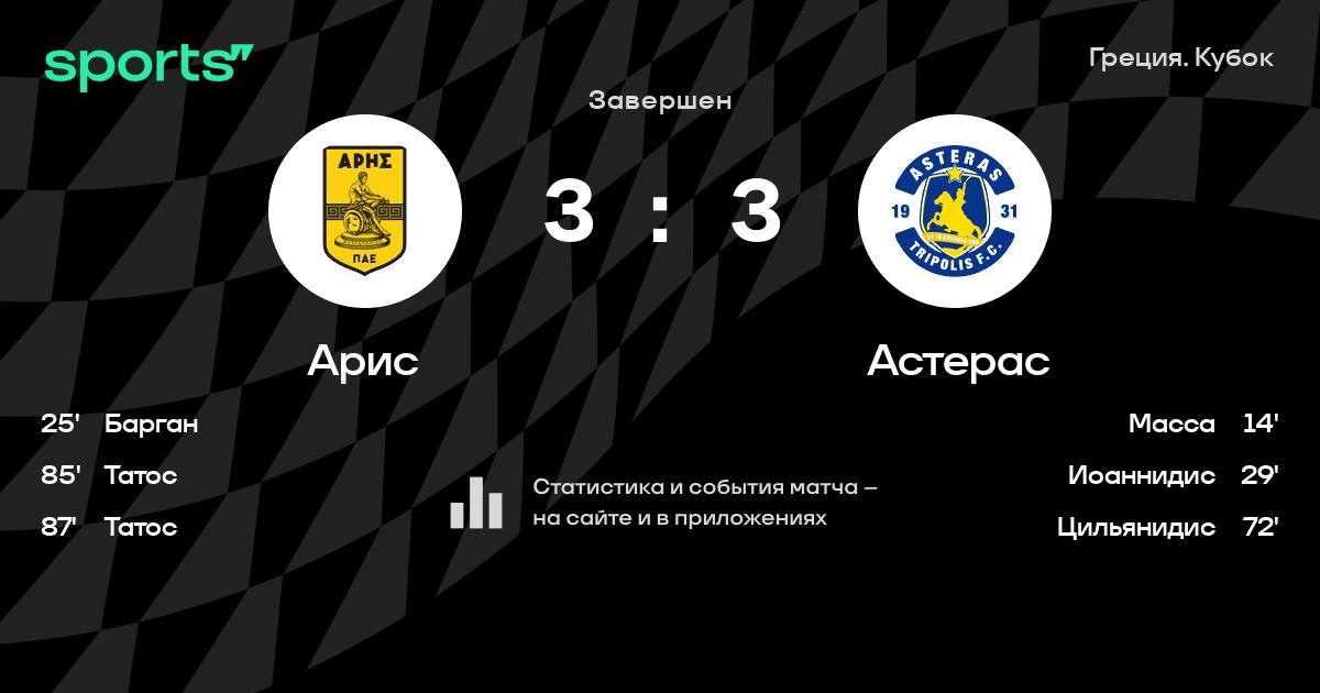 Кошицки - Эвангелу, Кирьякопулос, Бертос, Коцирас - Цукалас, Хамдани, Станисавлевич - Масса, Иоаннидис, ЦильянидисЗапасные: Атанасиадис, Игор Силва, Иглесиас, Димуцос, Чавес, Сиренгелас, Калцас