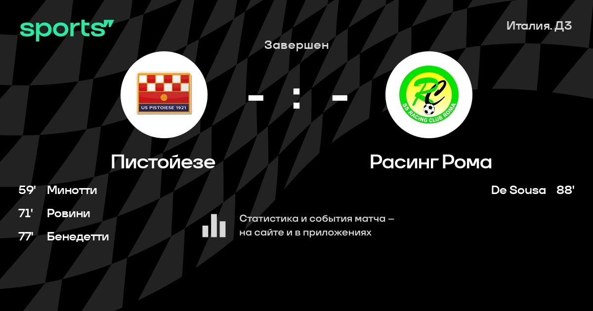 Feola - Priola, Ньютон, Джаси, Саммартино - Варано, Бенедетти, Минотти, Hamlili, Guglielmotti - РовиниЗапасные: Альбертони, Placido, Бони, Гарджуло, Луперини, Пройя, Pandolfi, Colombini, Tomaselli, Finocchio