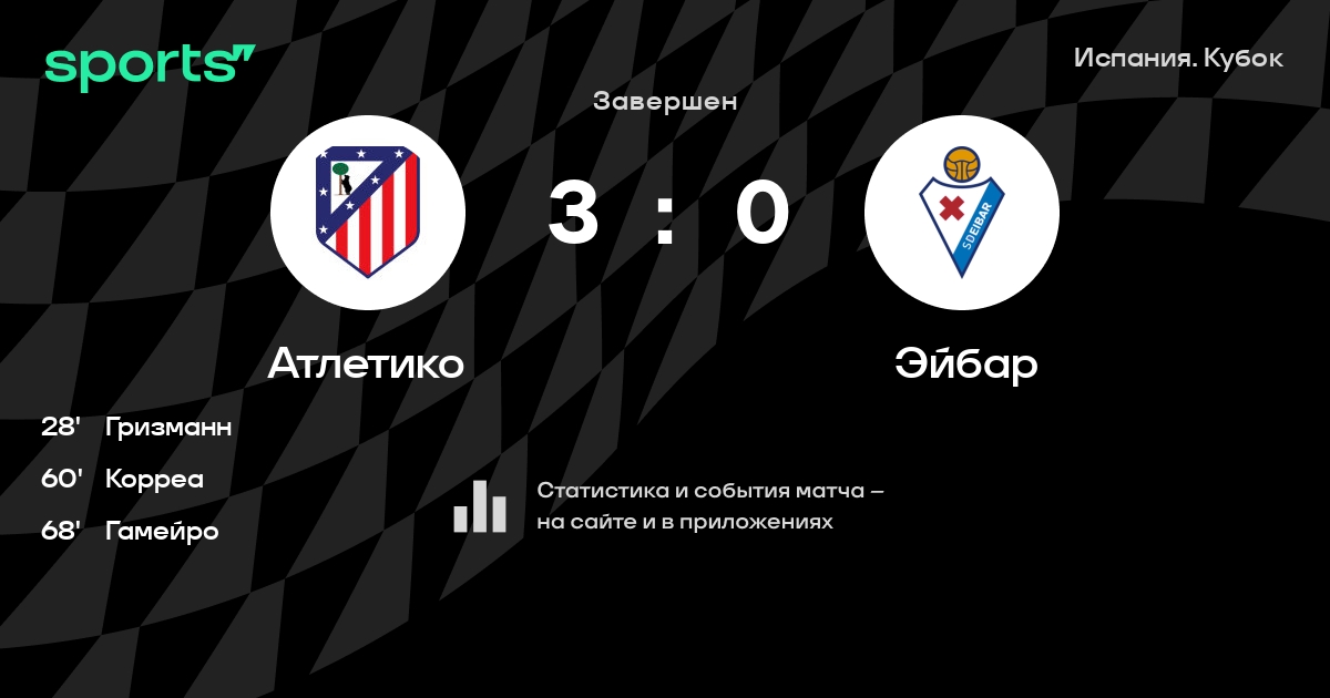 Мойя - Филипе Луис, Савич, Хименес, Хуанфран - Гайтан, Коке, Сауль, Корреа - Феррейра Карраско, ГризманнЗапасные: Андре Морейра, Врсалько, Годин, Баре, Гамейро