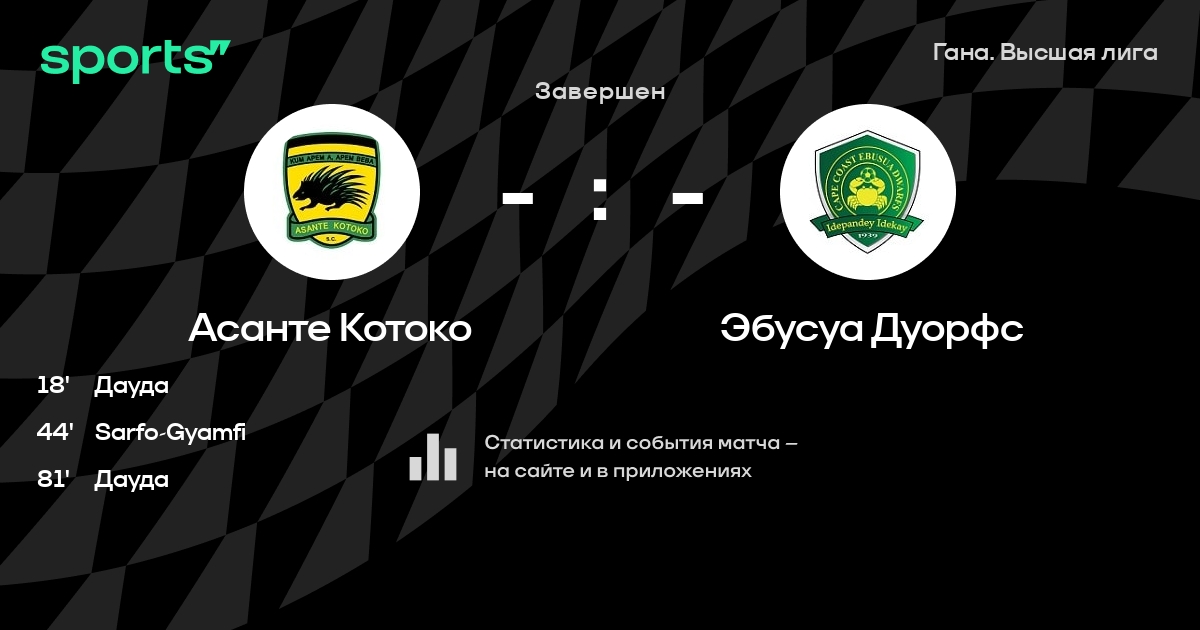 Соуа - Donkor, Adams, Brenya, Kusi - Sarfo-Gyamfi, Ampong, Nyame, Ньярко - Sodogo, ДаудаЗапасные: Аннан, Кьере, Nti, Yeboah, Mandela, Poku