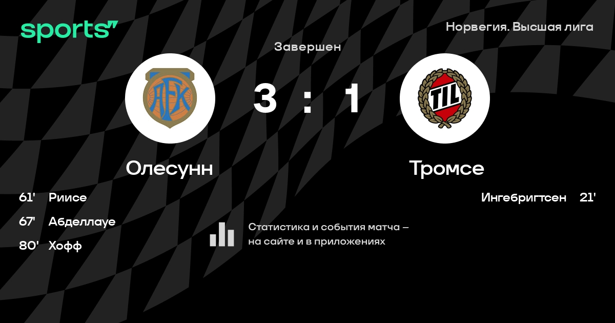 Ли - Киркесков, Гретарссон, Рамстейн, Арнарсон - Фет, Карлсен, Хофф, Бериша - Абделлауе, ВелдвейкЗапасные: Хейгре, Баштад, Хатлехол, Ли, Солнордал, Марлиньо