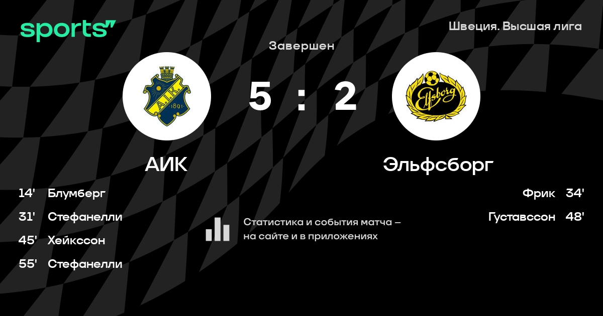 Стур-Эллегор - Лундквист, Дрешевич, Йонссон, Маннс - Лундевалль, Рандруп, Дайер, Густавссон - Жебали, ФрикЗапасные: Ольссон, Каиб, Маквей, Карлссон, Нильссон, Пруделль