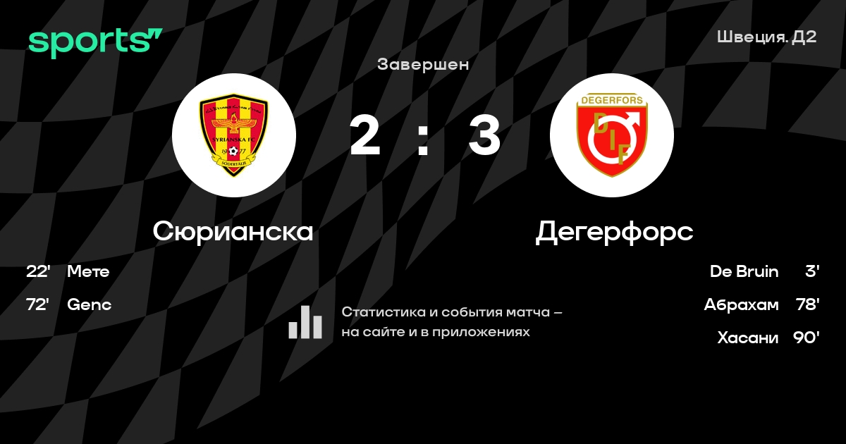 Klasson - Джеазе, Sachs, De Bruin, Ульссон, Викторссон - Линделль, Ladan - Андерссон, Маямбела, АбрахамЗапасные: Эст, Gustavsson-Stolpe, Ольссон, Stankovic, Хасани