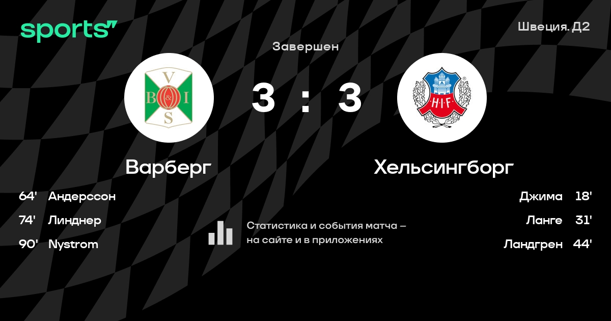 Пиздровски - Эрикссон, Хельструп, Ольссон, Ларссон, Джима - Ландгрен, Веде, Кристенсен - Ланге, АкповетаЗапасные: Йоэльссон, Веберг, Ралани, Ашиниоти-Йенссон, Мандей Сэмюэл, Тимосси-Андерссон, Свенссон