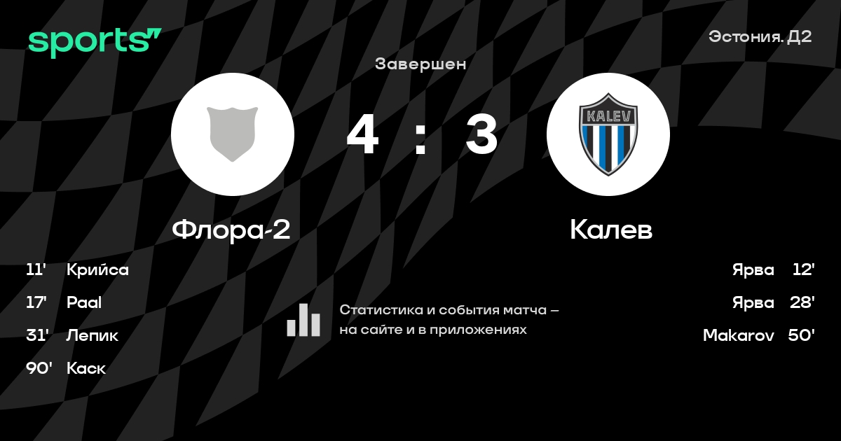 Savitski - Hausenberg, Джумадил, Хансберг, Sepp, Lilleorg, Крийса - Paal, Padar - Ярва, MakarovЗапасные: Королев, Jakobson, Naggel, Tammerik, Келдер, Mottus, Vard