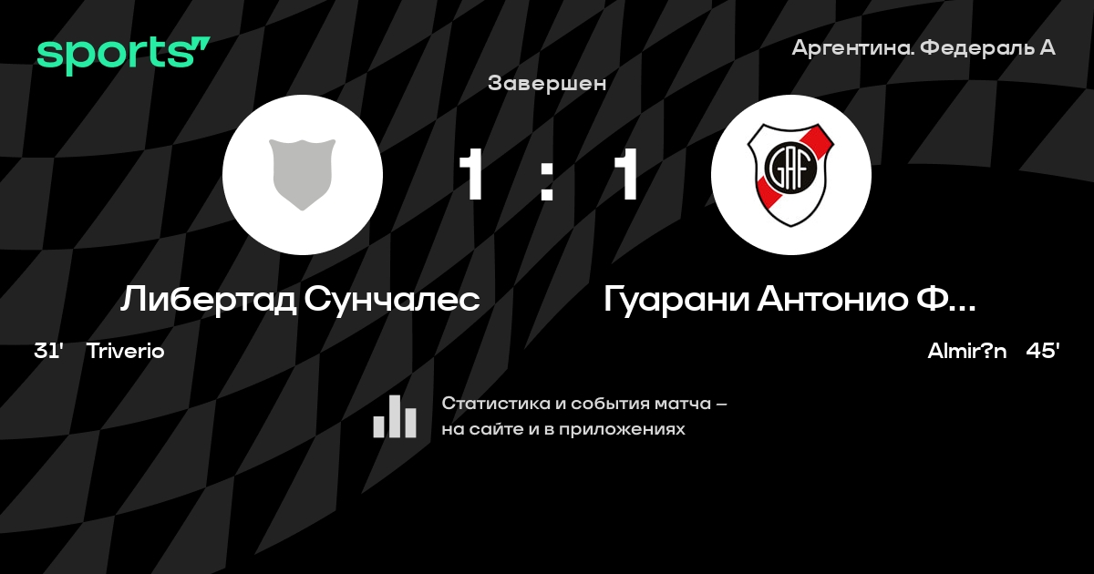 Либертад Сунчалес - Гуарани Антонио Франко: статистика матча