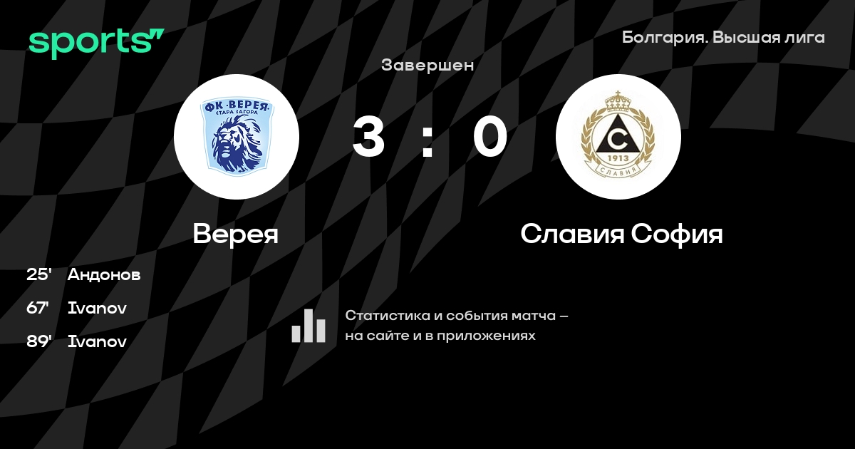 Трансляция Верея - Славия София