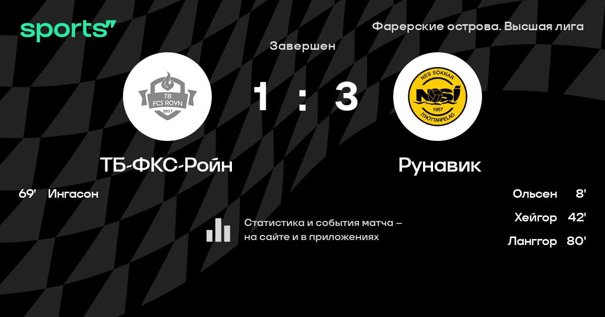 Berntzen - Kjærbo, Magnusarson Ellendersen, Ольсен, Ингасон, Jacobsen, Walberg - Годтфред, Эгильссон, Поульсен, Юнсен - Запасные: , Юнсен, Brattalíð, Mortensen, Mortensen, Лео, Lindenskov, Poulsen