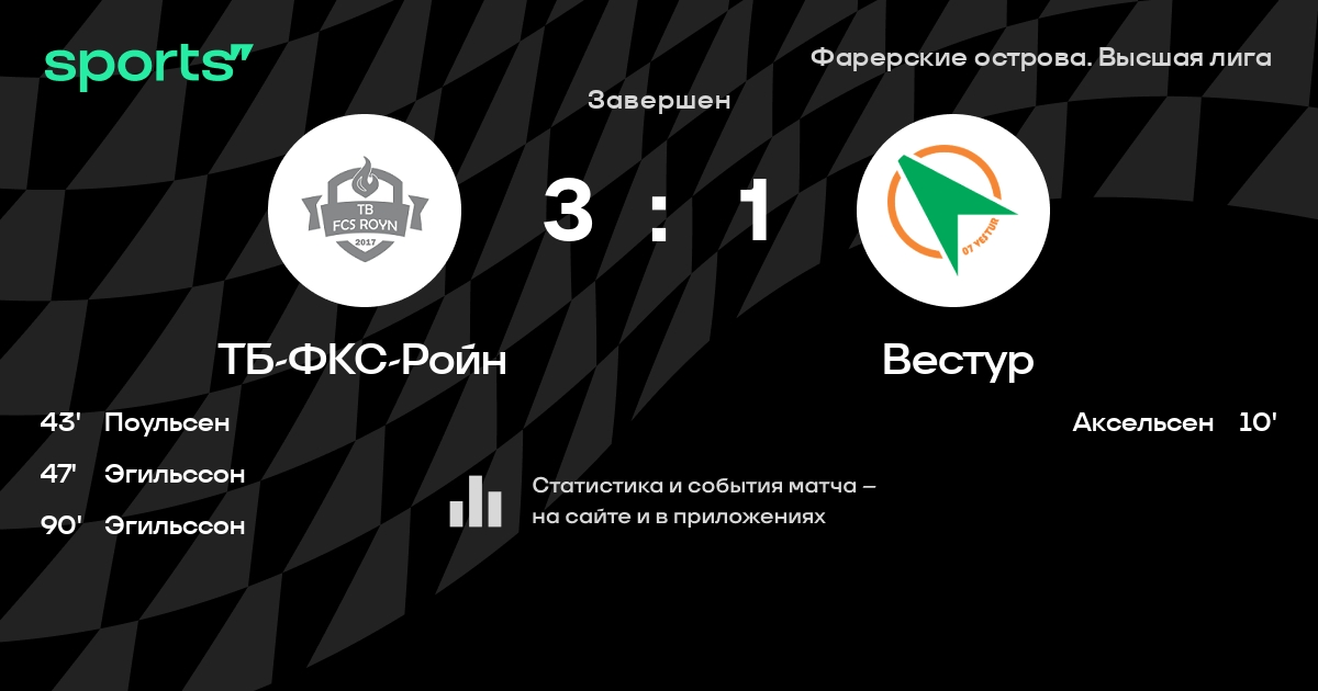 Эйдстайнссон - Хединссон, Nielsen, Egilsson, Mýlingstind - Magnusarson Olsen, Самуэльсен, Дурхуус - Нильсен, Фагерберг, АксельсенЗапасные: Stojkovic, Fróðason, Dalbø, Olsen, Hansen