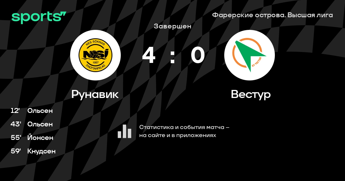 Эйдстайнссон - Nielsen, Dalbø, Egilsson, á Steig, Mýlingstind - Magnusarson Olsen, Таусен, Olsen - Фагерберг, АксельсенЗапасные: Stojkovic, Хединссон, Olsen, Самуэльсен, Дурхуус, Hansen, Нильсен