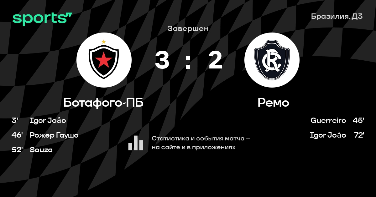 Рибейро - Леандро Силва, Alves, Sousa Portela Rosa, Рамос, de Freitas Soares - Эдуардо Рамос, Жоао Пауло, Микаэл - da Silva Lima, ЭдгарЗапасные: Андре Луиз, Gomes Costa, Даниэл, Габриэл Лима, Sousa Cardoso, Илаилсон, Martini Labarthe, Рони