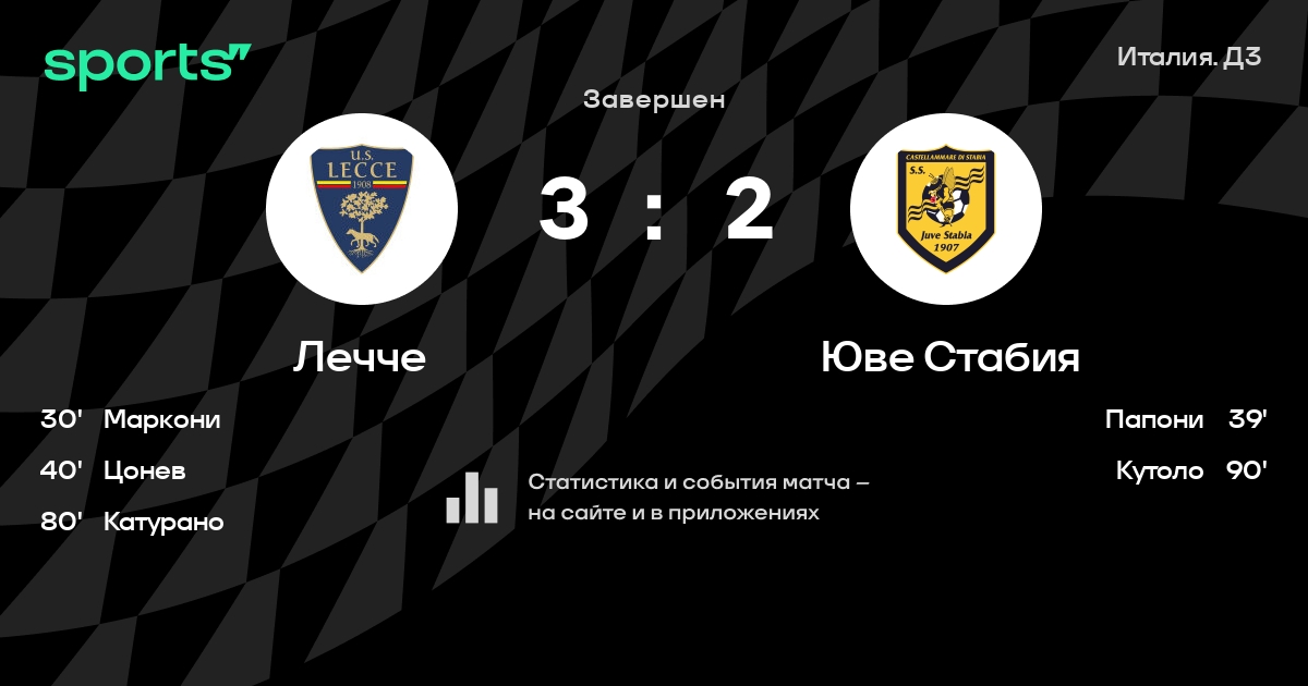 Перуккини - Козенца, Друди, Джоза - Costa Ferreira, Пачилли, Фьордилино, Цонев, Витофранческо - Doumbia, МаркониЗапасные: Блеве, Кирони, Muci, Ciancio, Лепоре, Арригони, Mengoli, Maimone, Monaco, Катурано, Торромино