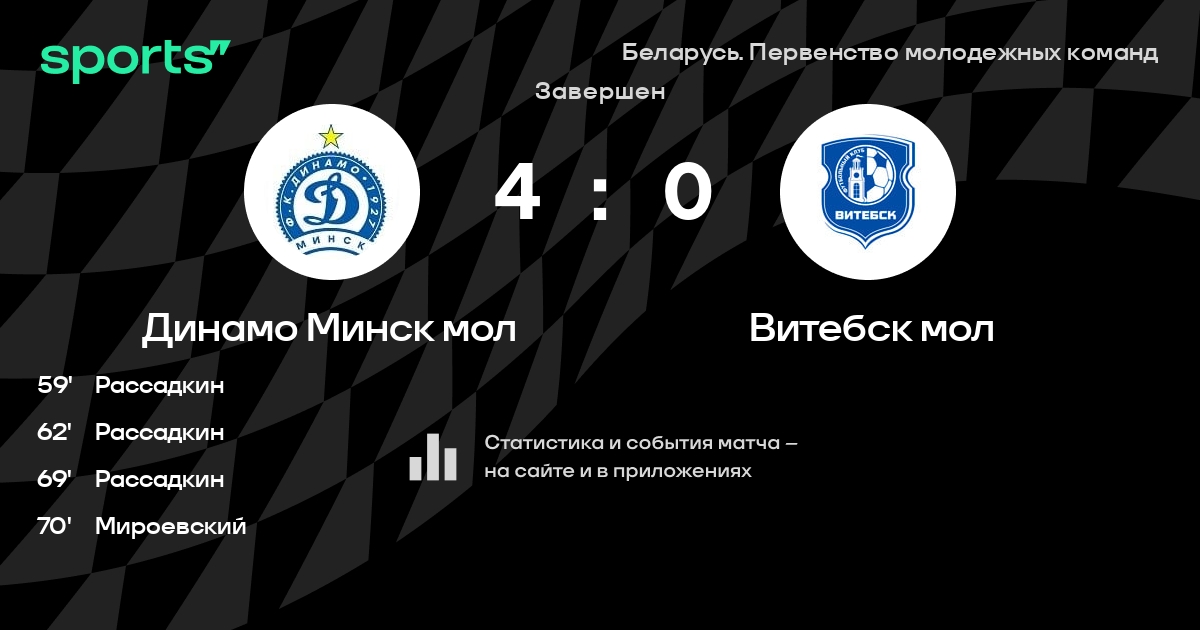 Динамо Минск мол – Витебск мол: коэффициенты