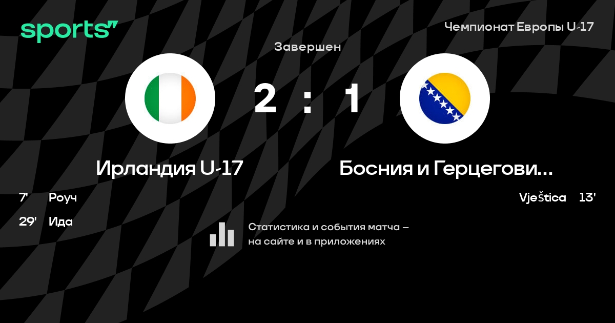 Трансляция Ирландия U-17 - Босния и Герцеговина U-17