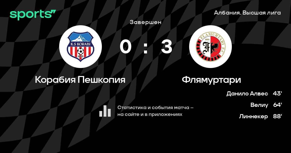 Халили - Куки, Велиу, Бериша, Mersini - Линнекер, Хюсени, Незирай - Данило Алвес, Шехай, БушичЗапасные: Кирко, Бекяй, Рнич, Llambro, Радович, Фазлиу, Галич