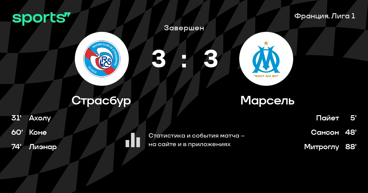 Чемпионат Франции. «Марсель» сыграл вничью со «Страсбуром» – 3:3