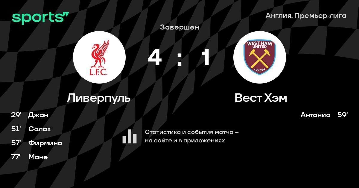 Трансляция Ливерпуль - Вест Хэм