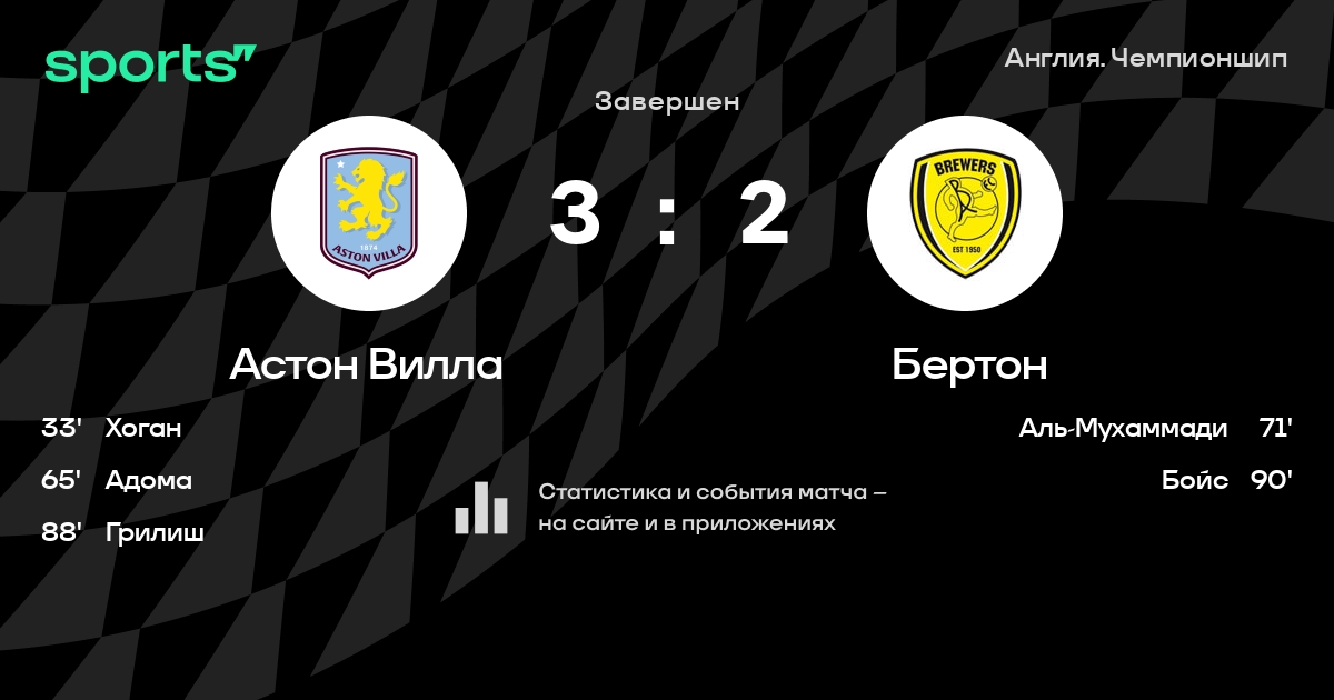 Джонстон - Хаттон, Терри, Честер, Аль-Мухаммади - Адома, Бьярнасон, Грилиш, Хурихэйн, Снодграсс - ХоганЗапасные: Банн, Тэйлор, Туанзебе, Единак, Онома, Дэвис