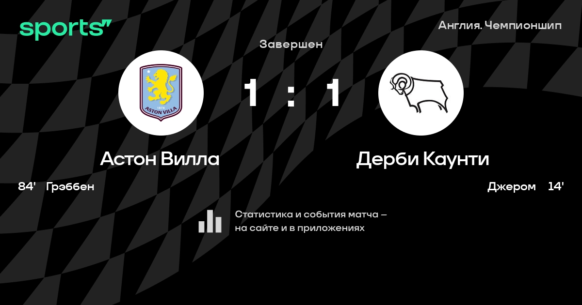 Чемпионшип. «Астон Вилла» сыграла вничью с «Дерби Каунти», «Кардифф» победил «Халл»