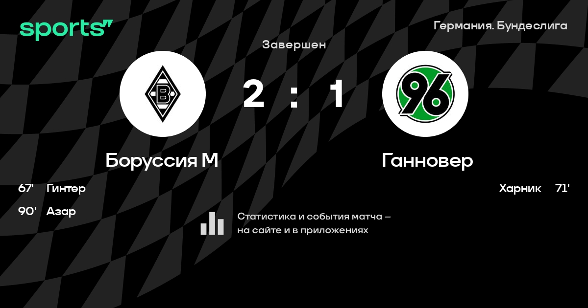 Зоммер - Вендт, Вестергор, Гинтер, Эльведи - Джонсон, Крамер, Кюизанс, Азар - Штиндль, РаффаэлЗапасные: Зиппель, Янчке, Оксфорд, Грифо, Закария, Бобадилья, Херрманн
