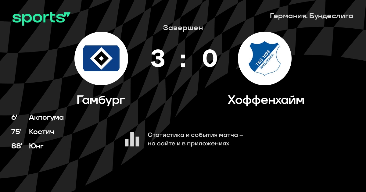 | 3 | Хоффенхайм | 34 | 15 | 10 | 9 | 66 | 48 | +18 | 55 | ||