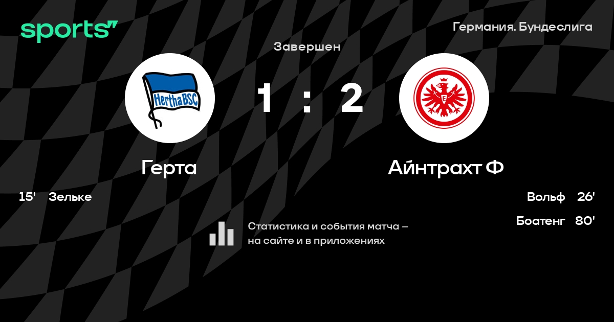 Чемпионат Германии. «Герта» уступила «Айнтрахту», «Вольфсбург» разгромил «Боруссию М»